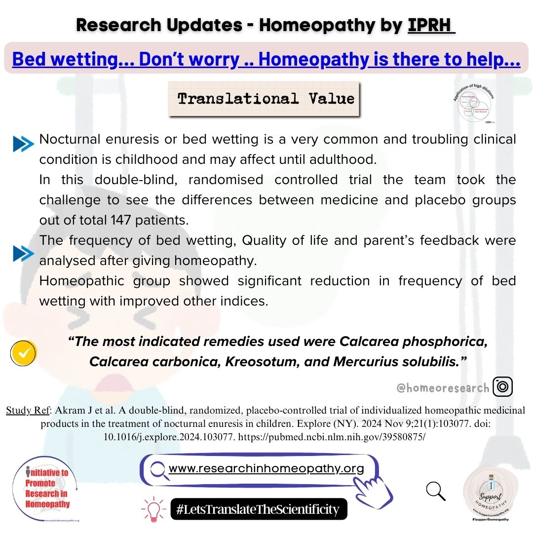 Original Study Ref: Akram J et al. A double-blind, randomized, placebo-controlled trial of individualized homeopathic medicinal products in the treatment of nocturnal enuresis in children. Explore (NY). 2024 Nov 9;21(1):103077. doi: 10.1016/j.explore.2024.103077.