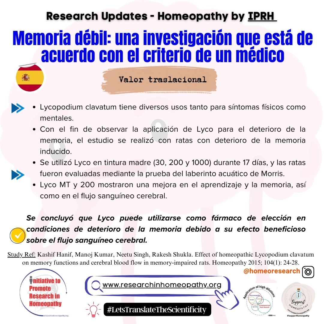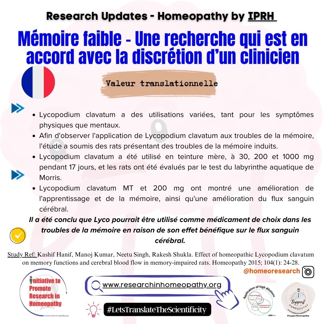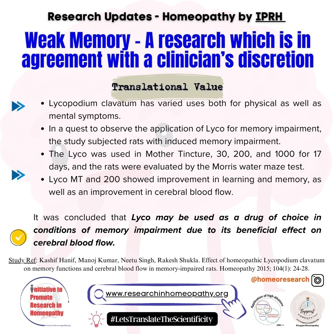 Original Study Ref: Kashif Hanif, Manoj Kumar, Neetu Singh, Rakesh Shukla. Effect of homeopathic Lycopodium clavatum on memory functions and cerebral blood flow in memory-impaired rats. Homeopathy 2015; 104(1): 24-28.